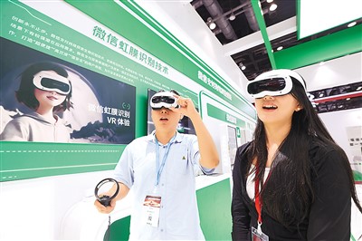 隨著數(shù)字金融領(lǐng)域創(chuàng)新成果不斷投入應用,刷掌支付、虹膜識別支付等支付手段逐步走進居民生活。圖為觀眾在2024中國國際金融展上通過虛擬現(xiàn)實設(shè)備體驗微信虹膜識別技術(shù)。陳曉根攝(人民視覺)