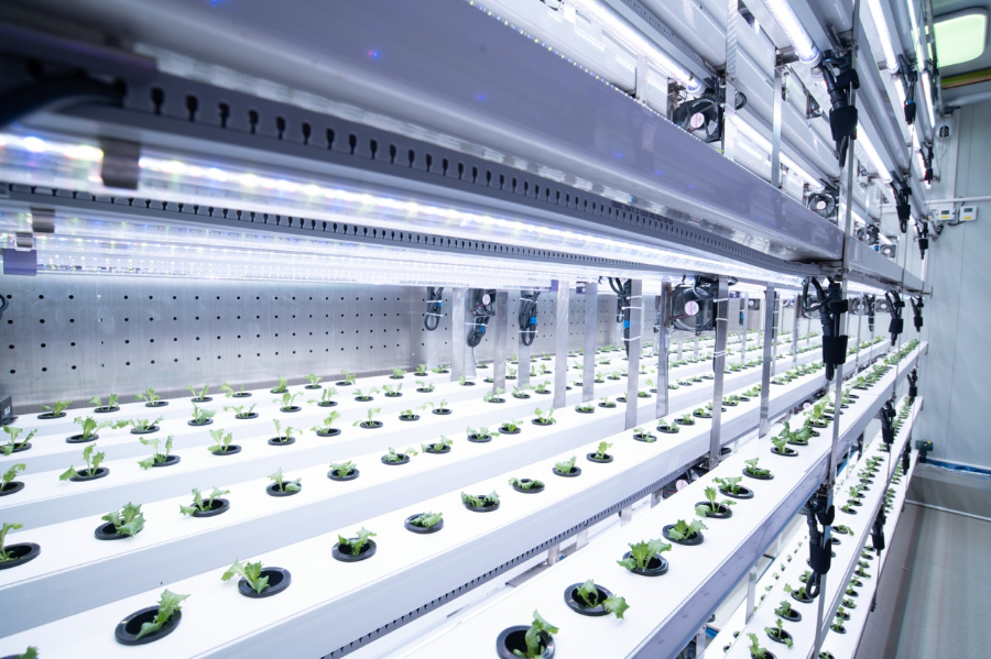 植物工廠能打破時間和空間限制,可以讓蔬果作物生長周期有效縮短,產(chǎn)量可達傳統(tǒng)模式的10-20倍。據(jù)測算,在大小約30立方米的集裝箱,一茬生菜產(chǎn)量能達到150公斤左右。