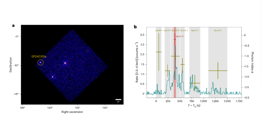 此后,世界各地多個天文望遠鏡陸續(xù)觀測到EP240315a。研究結果表明,EP240315a產(chǎn)生于遙遠的早期宇宙,當時宇宙年齡僅為現(xiàn)在的10%,EP240315a的信號花費了125億年才抵達地球。