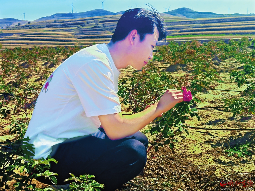 他了解到食用玫瑰有銷路但縣域內(nèi)沒有種植。在與村“兩委”商議后建議村民種植食用玫瑰。這個想法得到了鎮(zhèn)黨委的認(rèn)可,先在圪坨莊村試種8畝、八角村試種2畝。試種初期出現(xiàn)了問題,田里每日需人工澆灌,看管困難。他又建議村“兩委”鋪設(shè)管道建立滴灌系統(tǒng)和安裝監(jiān)控來實(shí)現(xiàn)精準(zhǔn)管理。他還與村“兩委”商議,利用光伏資金,設(shè)立工作崗位,從建設(shè)種植到開花期日常維護(hù),用工量已達(dá)100余人次,村民的收入也隨著玫瑰花開而增加。玫瑰示范園的建成,為農(nóng)產(chǎn)品深加工、發(fā)展鄉(xiāng)村旅游和補(bǔ)鏈月餅產(chǎn)業(yè)奠定了基礎(chǔ)。