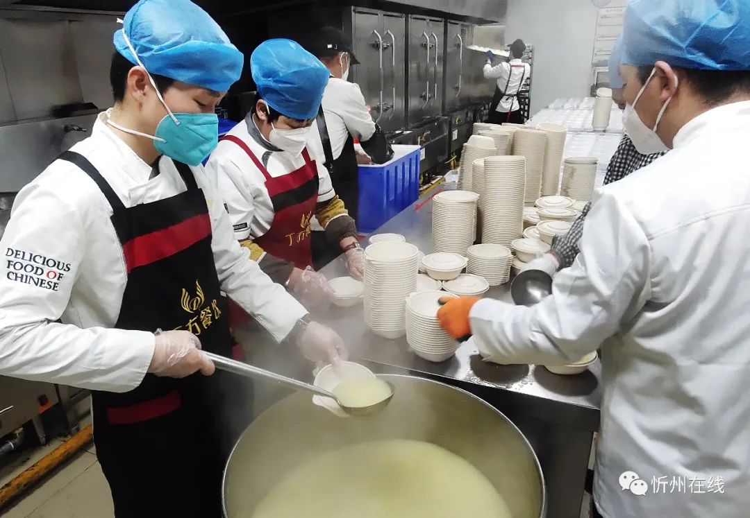 紅燒肉、過油肉、涼拌菜……12月2日下午,忻州丁方文化餐飲管理有限公司的廚師們正在有序忙碌著,一道道剛出鍋的飯菜被分餐員迅速分裝、打包、裝箱,他們要趕在18點之前送往忻州市級方艙醫(yī)院。