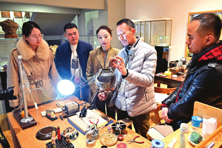 如今,夫妻二人擁有自己的工作室,各自收徒20余人。兩人的主攻方向是將“非遺”產品逐步融入文化創(chuàng)意產業(yè),真正讓傳統(tǒng)非遺“活”起來。
