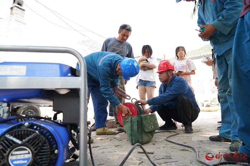 在黑崖堂村,路邊的超市門外一片狼藉,地面遍布的巨大卵石和水泥塊,連同護欄一同倒地的變壓器,都在無聲訴說著兩三日前洪水的可怕。身著藍色工裝的電力搶修人員的到來引來了群眾的圍觀,要送電了嗎?幾名工作人員麻利地操作著,先接線為臨時搶險指揮部供電,為盡快恢復當?shù)卣5纳a(chǎn)生活提供支撐,隨后先行修復部分電力設(shè)備和電纜,并利用應(yīng)急電源車送電到村口的變臺,再通過變臺送往村民家里,保障鄉(xiāng)親們照明等基本用電需求。