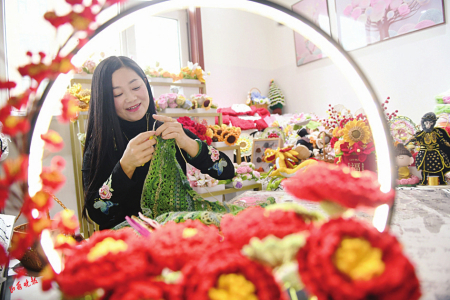 “這個鉤編悟空高30厘米,用時二十多天,是我一針一針鉤出來的?!?0月17日,太原市杏花嶺區(qū)褚晶晶家里擺滿了她創(chuàng)作的各種鉤編作品,其中根據(jù)《黑神話:悟空》創(chuàng)作的鉤編作品悟空形態(tài)逼真,惟妙惟肖。 褚晶晶是太原市杏花嶺區(qū)非遺鉤編技藝代表性傳承人,從事鉤編技藝十余年。她不僅熱衷于創(chuàng)作各種精美的鉤織手工作品,還致力于非遺文化的推廣與傳播?!斑@一組唐僧師徒是根據(jù)《西游記》師徒四人形象創(chuàng)作的,從構(gòu)思到畫圖再到完工,每一個細節(jié)都要很用心。”褚晶晶介紹。 褚晶晶的作品色彩豐富、形態(tài)多樣,既保留了傳統(tǒng)鉤編藝術(shù)的精髓,又融入現(xiàn)代審美元素,形成了鮮明的個人風格。多年來,她不斷精進技藝,探索創(chuàng)新,將鉤編技藝發(fā)揮得淋漓盡致。 說到鉤編作品悟空的創(chuàng)作,褚晶晶表示,熱門游戲《黑神話:悟空》帶火了山西,作為一名非遺傳承人,她有責任通過自己的作品,展示和推廣山西的優(yōu)秀傳統(tǒng)文化。 山西晚報記者 武六紅 通訊員 郝晨光攝影報道 1.褚晶晶沉浸在編織創(chuàng)作中。 2.客廳成了褚晶晶作品展示區(qū)。 3.褚晶晶鉤編的唐僧師徒作為非遺展覽,很受歡迎。 4.褚晶晶的新作“悟空”。 (責任編輯:梁艷) |