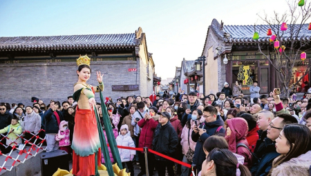“在大同古城鬧紅火,真是年味兒十足、體驗感拉滿?!眮碜蕴挠慰蛷埼奈拈_心地說。春節(jié)假期,大同市文化活動豐富多彩,以大同古城為中心,市縣(區(qū))聯(lián)動開展的“流光溢彩迎新年”“歡歌樂舞過大年”“梨園百花賀新年”“夢幻冰雪逐夢年”“翰墨書香文化年”“古都風(fēng)華盛世年”6個主題43項地方特色濃郁、群眾參與度高的文化活動,讓市民和游客目不暇接、流連忘返。在華嚴廣場、鼓樓東西街、下寺坡街、關(guān)帝廟戲臺、純陽宮廣場、大廟角、古城東南邑等處,社火巡游、過大年唱大戲、文化IP演繹、市集等活動精彩紛呈。