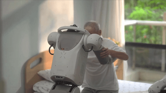 人機(jī)物理交互輔助老人起身。圖片來(lái)源:騰訊
