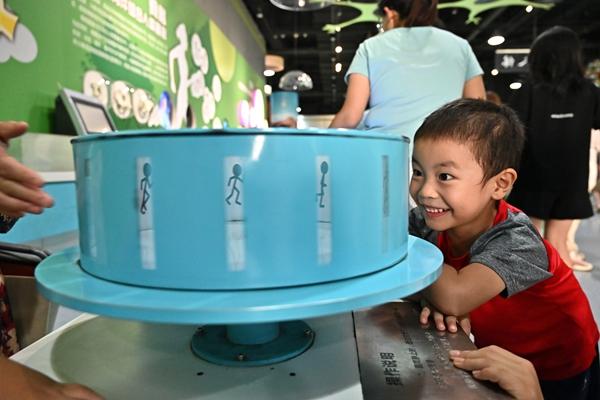 8月20日,山西省太原市,兒童在山西省科技館內觀察視覺暫留現象。今年暑假期間,山西省科技館推出“科學嗨一夏”系列科普活動,旨在激發(fā)不同年齡段孩子們的好奇心和探索欲。視覺中國供圖