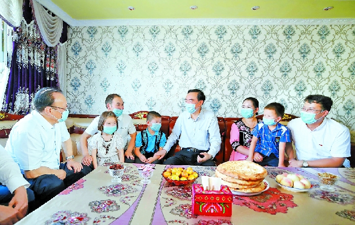 日前,自治區(qū)黨委書記陳全國(guó),自治區(qū)黨委副書記、自治區(qū)主席雪克來提·扎克爾在克孜勒蘇柯爾克孜自治州調(diào)研統(tǒng)籌推進(jìn)常態(tài)化疫情防控和經(jīng)濟(jì)社會(huì)發(fā)展工作。這是陳全國(guó)、雪克來提·扎克爾在阿克陶縣絲路佳苑易地扶貧搬遷安置點(diǎn),走進(jìn)建檔立卡貧困戶穆拉提·艾海提家中,關(guān)心詢問搬遷后的生活情況,勉勵(lì)他們持續(xù)增收致富,把日子越過越好。 崔志堅(jiān)攝