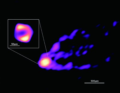 GMVA是一個由全球多個望遠(yuǎn)鏡組成的陣列?!癆LMA和GLT的加入,讓這個陣列形成一臺口徑等效于地球直徑的大望遠(yuǎn)鏡,提高了成像能力?!钡聡R普射電天文研究所的托馬斯·克里奇鮑姆說,“這讓我們獲得了一個新視角,可以看到噴流是如何從中央超大質(zhì)量黑洞周圍的環(huán)狀結(jié)構(gòu)中出現(xiàn)的,也可以在另一個波段測量黑洞周圍環(huán)狀結(jié)構(gòu)的直徑?!?/p>
