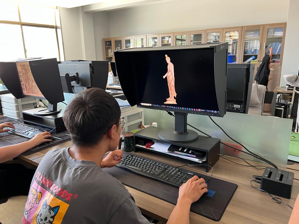 工作人員對彩塑進(jìn)行三維重建。新華社記者徐壯攝