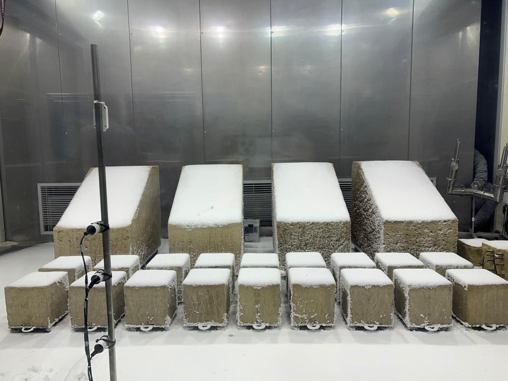 在國內(nèi)首個文物保護(hù)領(lǐng)域多場耦合實驗室,4塊覆蓋著厚厚冰雪的土方吸引了記者們的注意。雨雪風(fēng)霜是實驗室的模擬對象,從莫高窟等地取來的土石將經(jīng)受各種氣象條件,以揭示石窟寺風(fēng)化的奧秘。