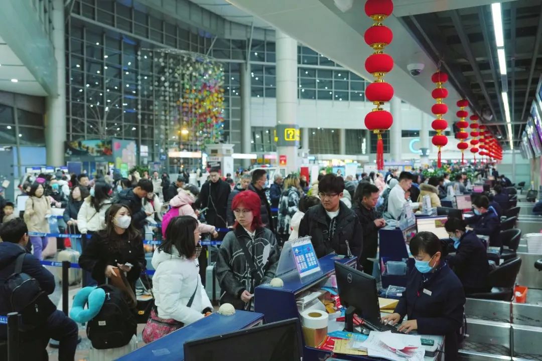 太原機(jī)場(chǎng)候車大廳內(nèi),人流如織,工作人員有條不紊地幫旅客辦理乘機(jī)手續(xù),保障她們準(zhǔn)點(diǎn)登機(jī)、早日回家。