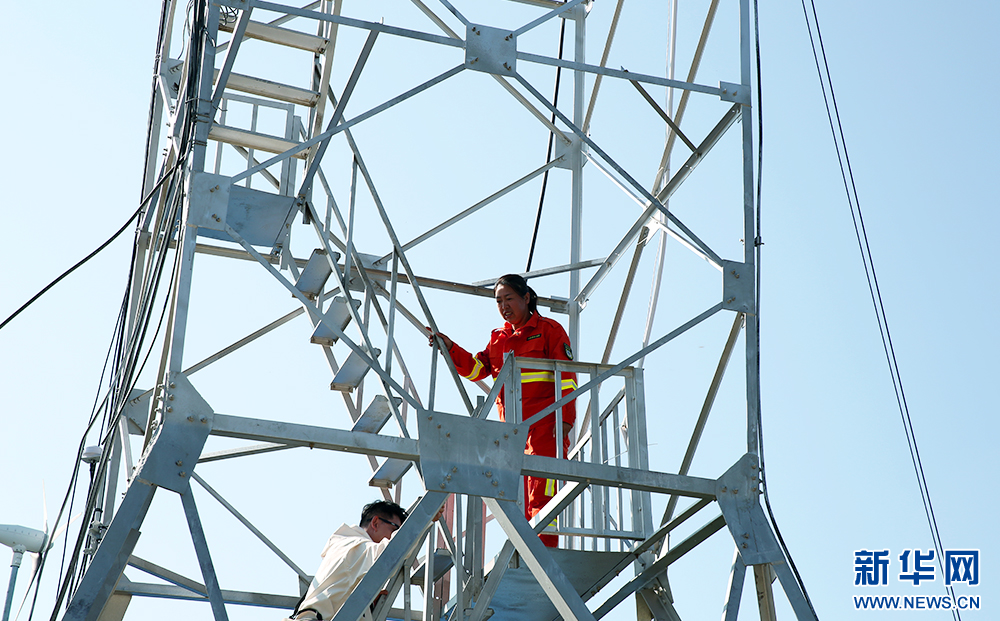 李穎在攀爬瞭望塔(拍攝于8月12日)。新華網(wǎng)石毅 攝