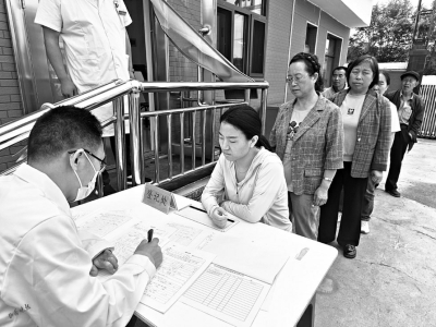 “有沒有基礎(chǔ)疾?。俊薄坝袥]有過敏史?”“早上吃飯了沒?”……8月20日10時,在靜樂縣杜家村鎮(zhèn)中心衛(wèi)生院的門口,等著要體檢的村民們已經(jīng)排起了長隊。