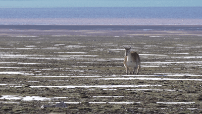 新華社北京8月11日電 可可西里卓乃湖畔,一夜大雪過后,湖面更加湛藍(lán),空氣冰冷而清新,低處草地上的雪已融化,稍高一點(diǎn)的山崗上,還覆蓋著厚厚的積雪。 下午三點(diǎn)鐘,高原的太陽開始有點(diǎn)暖意,正是藏羚羊覓食的高峰。餓了一夜的藏羚羊,這邊一群,那邊一群,像芝麻一般,撒滿了卓乃湖畔的坡梁山崗。 突然,離記者最近的一群藏羚羊旁邊,出現(xiàn)了一只步履稍顯僵硬的“藏羚羊”,腳步?jīng)]有那么輕盈,體型也更豐滿一些。不像其它藏羚羊一邊啃草一邊走動(dòng),這只“藏羚羊”一直昂著頭,“小心翼翼”卻又堅(jiān)定執(zhí)著地一點(diǎn)點(diǎn)靠近藏羚羊群。