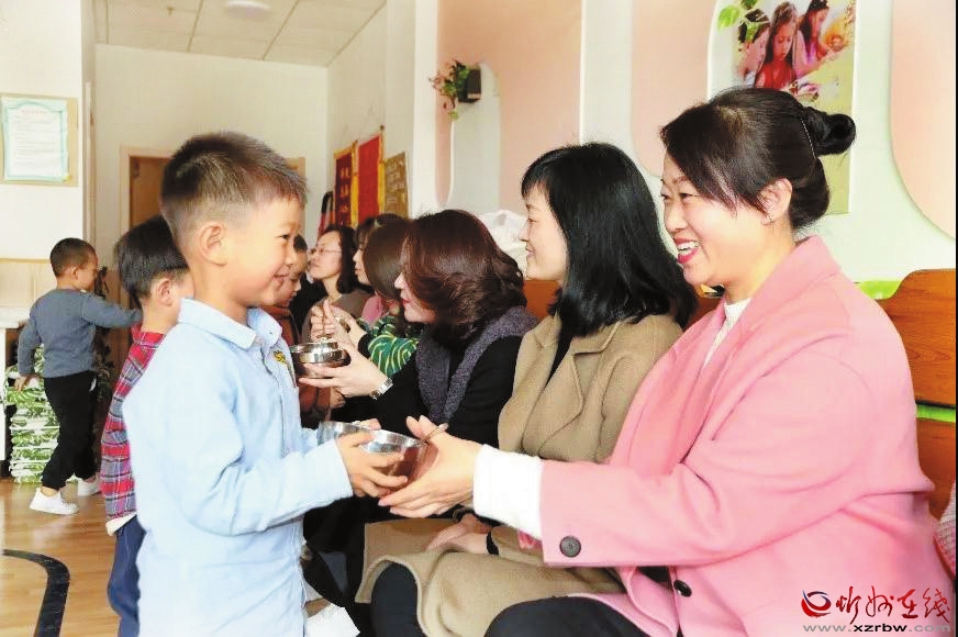 3月8日,忻州市幼兒園雁門分園舉辦了以感恩為主題的親子活動(dòng),通過形式多樣的活動(dòng)讓孩子們陪媽媽一起過節(jié),引導(dǎo)幼兒從小學(xué)會(huì)感恩,讓媽媽們感受到孩子的成長(zhǎng)與愛。圖為活動(dòng)當(dāng)天,幼兒將自己做的梨湯送給媽媽。 (本報(bào)通訊員 攝)