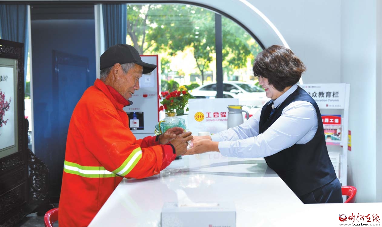 工行忻州汾源支行的“工會驛站”特別關(guān)注戶外勞動者的需求,在驛站內(nèi)設(shè)立了休息區(qū),并增設(shè)了老花鏡、急救藥箱、手機(jī)充電、免費飲用水、雨傘等設(shè)施,從細(xì)節(jié)做起,給予戶外勞動者提供夏可納涼、冬可取暖、累可歇腳、遮風(fēng)避雨的溫馨服務(wù)。環(huán)衛(wèi)工李師傅對“工會驛站”的體驗贊不絕口,他說:“工會驛站真的是太有愛了,渴了進(jìn)來喝口水,累了進(jìn)來歇歇腳,汾源支行的服務(wù)真的很貼心?!?/p>