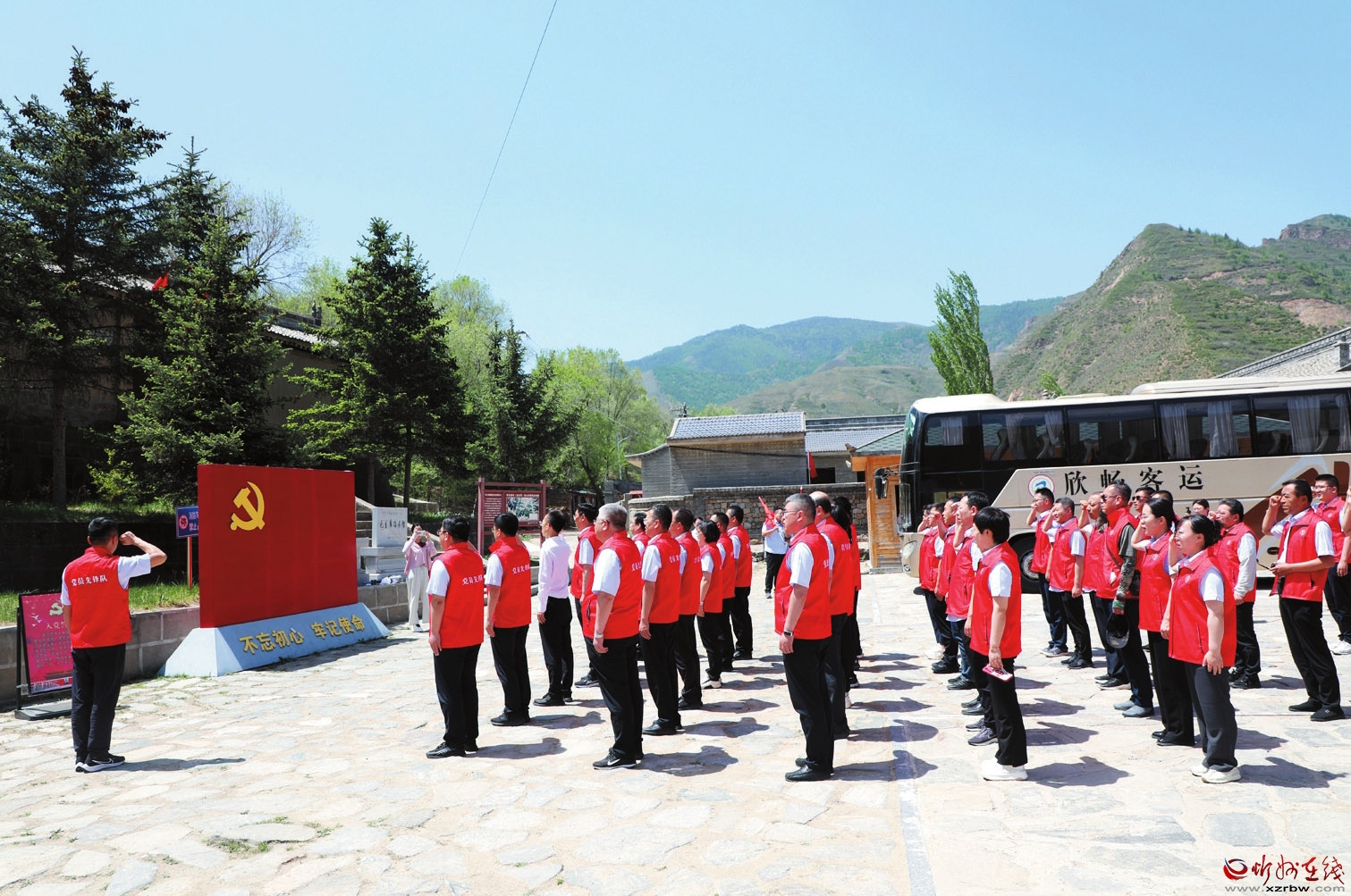 近日,農(nóng)行忻州分行機(jī)關(guān)組織全體黨員前往繁峙縣伯強(qiáng)村毛主席路居紀(jì)念館開展主題黨日活動(dòng)。在紀(jì)念館前,全體黨員面對黨旗莊嚴(yán)宣誓,重溫入黨誓詞,接受了一次深刻的紅色教育洗禮。(王燦 攝)