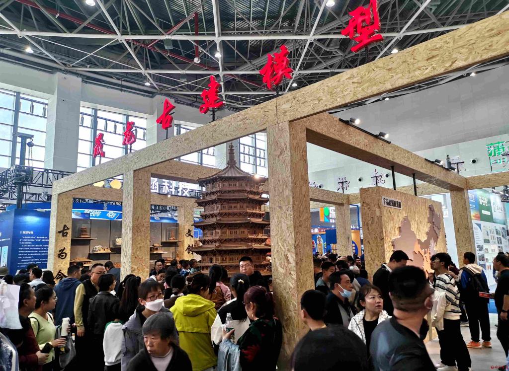 走進第六屆山西文博會忻州晟龍木雕展區(qū),一座高約3米、氣勢宏偉的應縣木塔模型吸引了眾多觀展游客的目光,待大家慢慢走近,就會發(fā)現(xiàn)木塔模型里都是復刻原型的榫卯結(jié)構(gòu)。該模型以朔州應縣木塔為母本,通過20∶1的比例微縮打造,更難得的是塔內(nèi)也實現(xiàn)了完全還原,樓梯扶手清晰可見,門窗都能打開。所有路過的參觀者無不嘆為觀止,紛紛駐足拍照留念。