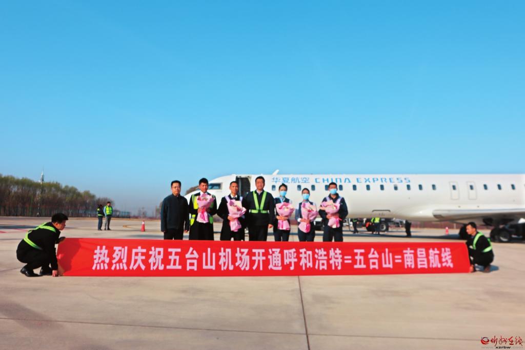 南昌-五臺山-呼和浩特航線成功首航。 本報記者 張志遠攝