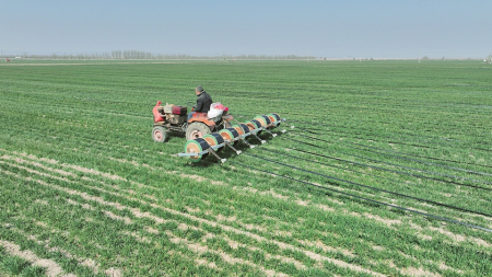 范建榮種植小麥150畝,依靠大禹渡灌區(qū)黃灌水作為澆灌來(lái)源?!胞溩訚擦舜喝?,三水對(duì)面望糧山。”范建榮說(shuō),這句晉南農(nóng)諺中的“春三水”,指的是春季農(nóng)田要澆灌的三輪水,其中第一輪水叫“返青水”,就是小麥返青關(guān)鍵期澆灌的水。