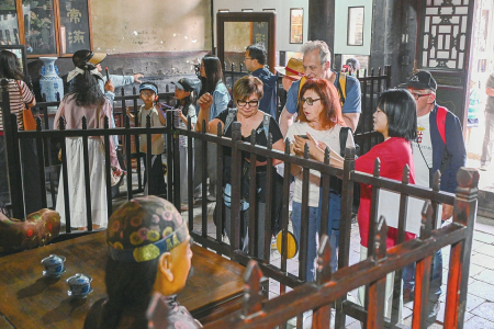 5月18日,太原市清徐縣山西晉韻文化產(chǎn)業(yè)園內(nèi),中小學(xué)生研學(xué)團(tuán)在磚雕藝術(shù)博物館與古建筑模型博物館內(nèi)感受古建筑的匠心巧思。本報(bào)記者王瑞瑞攝