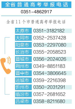 山西日報訊(記者李林霞)為維護高考公平公正,省招考中心日前公布了今年全省普通高考舉報電話。