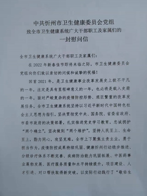 在2022年新春佳節(jié)即將來臨之際,市衛(wèi)生健康委員會(huì)黨組向你們致以親切的問候和誠摯的祝福!