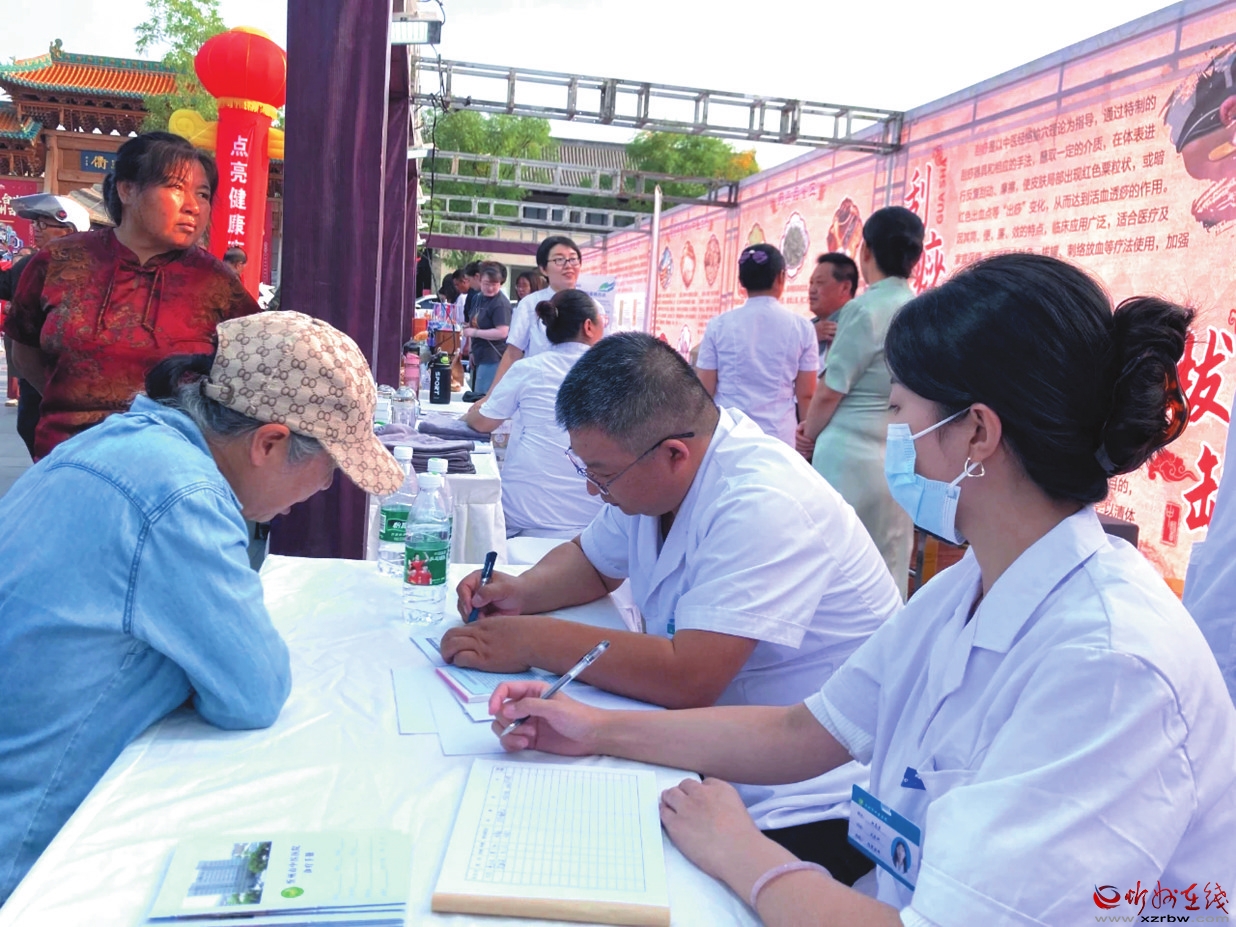 中醫(yī)專家化身夜市“攤主”為市民義診 李沛欣攝 “我最近牙疼,有點(diǎn)上火,聽說刮痧效果不錯(cuò),是真的嗎?”一名患者走進(jìn)中醫(yī)藥文化夜市診區(qū)?!按_實(shí),刮痧有助于疏通經(jīng)絡(luò)、清熱消腫,您可以體驗(yàn)一下。此外,針灸也會收到一定效果?!痹\區(qū)內(nèi)的醫(yī)生介紹著刮痧、針灸的功效。 9月18日至19日的忻州古城北城門廣場不同于往日,中藥香取代了燒烤味,八段錦代替了廣場舞,多名省、市級名中醫(yī)在此把脈問診。廣大群眾、游客相聚于廣場,觀看養(yǎng)身操表演、品嘗中藥茶飲藥膳、體驗(yàn)傳統(tǒng)中醫(yī)療法……沉浸式享受這個(gè)能看、能喝、能玩,更能治病與養(yǎng)生的中醫(yī)藥文化夜市。 全新嘗試 中醫(yī)藥融入忻州夜生活 9月18日下午,由市衛(wèi)生健康委員會主辦、市中醫(yī)醫(yī)院承辦的忻州市首屆中醫(yī)藥文化夜市啟動儀式在忻州古城北城門廣場舉行。 本次夜市活動以“傳承中醫(yī)藥文化,點(diǎn)亮健康夜市”為主題,旨在通過中醫(yī)藥傳統(tǒng)文化新講述、名老中醫(yī)服務(wù)新體驗(yàn)、中醫(yī)藥非遺技法新互動等豐富多彩的形式,推動中醫(yī)藥融入百姓生活,服務(wù)百姓健康,進(jìn)一步促進(jìn)我市中醫(yī)藥文化的傳承發(fā)展、守正創(chuàng)新。 夜市里,各個(gè)攤位座無虛席,每一處問診臺都被熱情的群眾層層包圍。 市中醫(yī)醫(yī)院腫瘤科(老年病科)主任醫(yī)師周復(fù)興正為群眾“一對一”把脈問診、辨證開方。今年78歲的焦女士剛做完手術(shù),面帶愁容地向周醫(yī)生傾訴著自己的困擾:“我最近胸口有點(diǎn)憋脹,睡眠不好,食欲不振,大便也不順暢?!泵鎸Σ∪说脑V求,周醫(yī)生仔細(xì)診斷、認(rèn)真解答:“不要太過擔(dān)憂,您這是胸痹、陽氣虛,和處于手術(shù)恢復(fù)期有關(guān),需要調(diào)理。我給您開個(gè)藥方,一共7副中藥,您回去按時(shí)服用,服完藥后再復(fù)查一下看看情況。” 50歲的張女士晚上來古城散步,發(fā)現(xiàn)有專家在此義診,便早早前來排隊(duì),她高興地說:“我之前心心念念想掛秦天富大夫的號,沒想到今天這個(gè)活動竟然有秦大夫義診,真是太幸運(yùn)了!”在她身邊,67歲的劉先生也附和道:“中醫(yī)夜市這種形式真新穎,大夫們都很有耐心,有的地方我聽不懂還給我解釋好幾遍。” 守正創(chuàng)新 名醫(yī)領(lǐng)航吸引群眾駐足嘗試 夜市的出彩之處離不開它的“守正”。 啟動儀式上,為37名省、市級名中醫(yī)頒發(fā)證書、為我市“名中醫(yī)工作室”授牌、舉行中醫(yī)藥傳統(tǒng)師承拜師儀式……一系列表彰先進(jìn)典型、弘揚(yáng)尊師重教傳統(tǒng)風(fēng)尚的舉措激勵著全市中醫(yī)工作者以“名中醫(yī)”為榜樣,始終保持奮發(fā)向上的進(jìn)取心、大醫(yī)精誠的赤子心,在實(shí)踐中增長本領(lǐng),在磨礪中培養(yǎng)才干,成為熱愛中醫(yī)藥事業(yè)、理論深厚、技術(shù)精湛的中醫(yī)藥人才。 夜市的魅力還在于它的“用心”。融入了創(chuàng)新元素與養(yǎng)生理念的中醫(yī)藥文化夜市,讓每一位市民游客都能在輕松的氛圍中療愈身心。 “左腳分開,松勁站立……”伴隨著舒緩的音樂,市中醫(yī)醫(yī)院的醫(yī)護(hù)人員帶來的八段錦表演將現(xiàn)場氣氛推向高潮,引得臺下群眾紛紛跟著抬手、下腰、提腳;緊接著,一場具備疏通經(jīng)絡(luò)、活血化瘀之效的經(jīng)絡(luò)養(yǎng)生拍打操表演登場,伴隨動感十足的音樂,現(xiàn)場群眾跟著拍打胳膊,一招一式,學(xué)得有模有樣;隨后,醫(yī)護(hù)人員還帶來了精彩的太極拳表演,二十四式太極拳在太極八卦背景圖的映襯下更顯韻味十足。“一個(gè)動作就是一味良藥”,在呼吸吐納、舉手投足間,人們一天的疲憊悄然消散。 省級名老中醫(yī)、曾擔(dān)任市中醫(yī)醫(yī)院院長的秦天富在以“中醫(yī)養(yǎng)生之道”為主題的健康知識講座中登臺開講。他從中醫(yī)的醫(yī)藥、飲食、季節(jié)、起居、情志等方面,詳細(xì)闡述了形神兼養(yǎng)、動靜結(jié)合、順其自然的養(yǎng)生之道。 夜色漸濃,華燈初上,光影交錯(cuò)中,廣場上的中醫(yī)藥文化夜市接待著八方來客。夜市東西兩邊共設(shè)置了包括中醫(yī)專家義診區(qū)、針灸區(qū)、推拿區(qū)、中醫(yī)皮膚特色技術(shù)體驗(yàn)區(qū)、穴位貼敷區(qū)、刮痧拔罐區(qū)、藥茶品鑒區(qū)、藥食同源產(chǎn)品展示區(qū)等在內(nèi)的20個(gè)展位。秦天富、王悅信、張榮德、周復(fù)興等來自市中醫(yī)醫(yī)院、市人民醫(yī)院和各縣(市、區(qū))的名中醫(yī)一起忙碌接診,向前來咨詢問診的市民朋友現(xiàn)場“望聞問切”,悉心辨證開方。 廣受好評 中醫(yī)藥文化引領(lǐng)健康新風(fēng)尚 現(xiàn)場群眾在中藥茶飲藥膳區(qū)排起長隊(duì),細(xì)啜著養(yǎng)生藥茶,于茶香繚繞間體會著草藥特有的清新;近距離觀摩體驗(yàn)針灸、拔罐、推拿、刮痧、艾灸等特色中醫(yī)療法,深切領(lǐng)略中醫(yī)文化的獨(dú)特魅力;了解各種中藥香包功效,辨識名貴中藥材,嘗試一次中醫(yī)理療……在這場別開生面的中醫(yī)藥盛會中,越來越多年輕的面孔參與進(jìn)來。 “我什么都沒有說,醫(yī)生就能通過看面色指出我身體的一些毛病,真神奇啊?!痹谥嗅t(