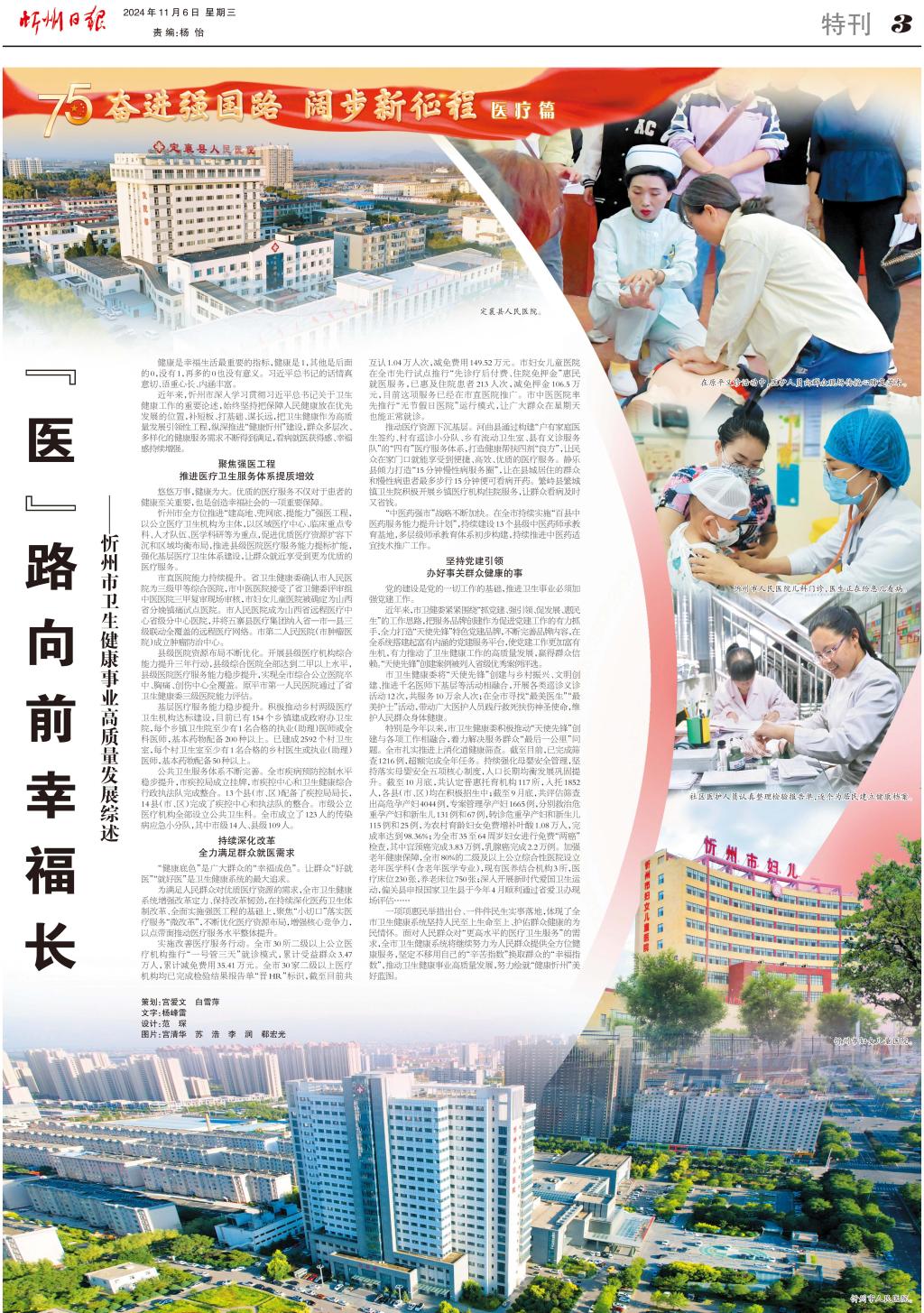 近年來,忻州市深入學習貫徹習近平總書記關于衛(wèi)生健康工作的重要論述,始終堅持把保障人民健康放在優(yōu)先發(fā)展的位置,補短板、打基礎、謀長遠,把衛(wèi)生健康作為高質(zhì)量發(fā)展引領性工程,縱深推進“健康忻州”建設,群眾多層次、多樣化的健康服務需求不斷得到滿足,看病就醫(yī)獲得感、幸福感持續(xù)增強。