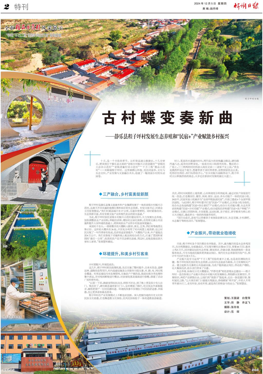產(chǎn)業(yè)振興是學(xué)習(xí)運(yùn)用“千萬工程”經(jīng)驗(yàn)的重中之重,也是農(nóng)民增收的關(guān)鍵。程子坪村依托良好的生態(tài)資源,以汾河生態(tài)旅游為載體,大力發(fā)展相關(guān)產(chǎn)業(yè)。建立起較為完善的公共基礎(chǔ)設(shè)施,為農(nóng)戶提供就業(yè)崗位,帶動(dòng)農(nóng)戶增收,壯大集體經(jīng)濟(jì),給鄉(xiāng)親們帶來了實(shí)惠。