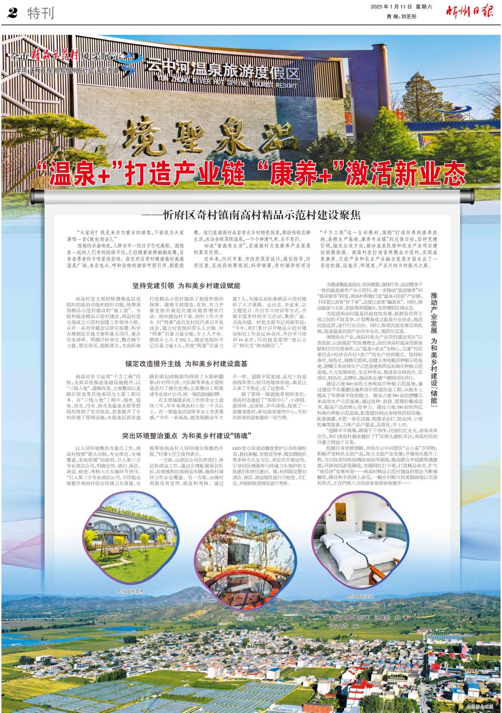 近年來,忻州市委、市政府頂層設(shè)計(jì),高位指導(dǎo),忻府區(qū)委、區(qū)政府統(tǒng)籌規(guī)劃,科學(xué)部署,奇村鎮(zhèn)學(xué)好用活“千萬工程”這一生動(dòng)教材,圍繞“打造世界級(jí)康養(yǎng)勝地、雜糧生產(chǎn)基地、康養(yǎng)專業(yè)鎮(zhèn)”的總體目標(biāo),堅(jiān)持黨建引領(lǐng),錨定主攻方向,推動(dòng)溫泉民宿和農(nóng)業(yè)產(chǎn)業(yè)項(xiàng)目建設(shè)做精做強(qiáng)。南高村在打造省級(jí)精品示范村,實(shí)現(xiàn)溫泉康養(yǎng)、文旅產(chǎn)業(yè)和農(nóng)業(yè)產(chǎn)業(yè)融合發(fā)展方面走出了一條組織強(qiáng)、設(shè)施齊、環(huán)境美、產(chǎn)業(yè)興的鄉(xiāng)村振興之路。