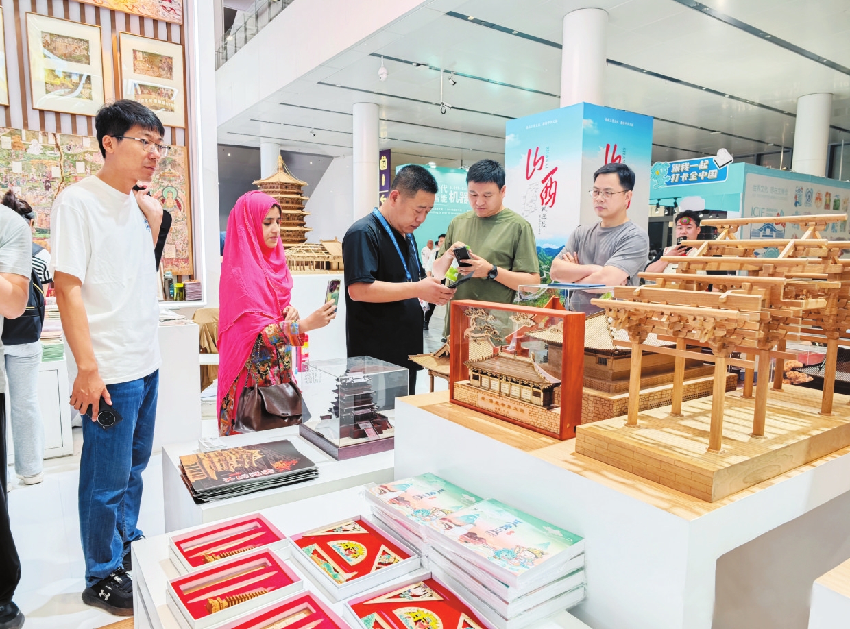 我市古建筑模型、文創(chuàng)產品受到參會嘉賓青睞。本報記者魏鵬飛攝