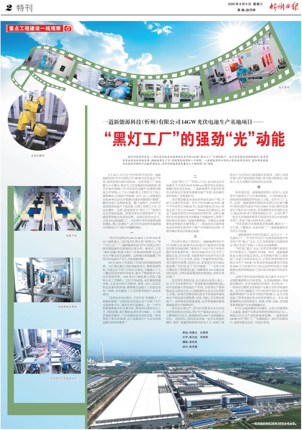 | 一道新能源科技(忻州)有限公司14GW光伏電池生產(chǎn)基地項目:“黑燈工廠”的強(qiáng)勁“光”動能 |