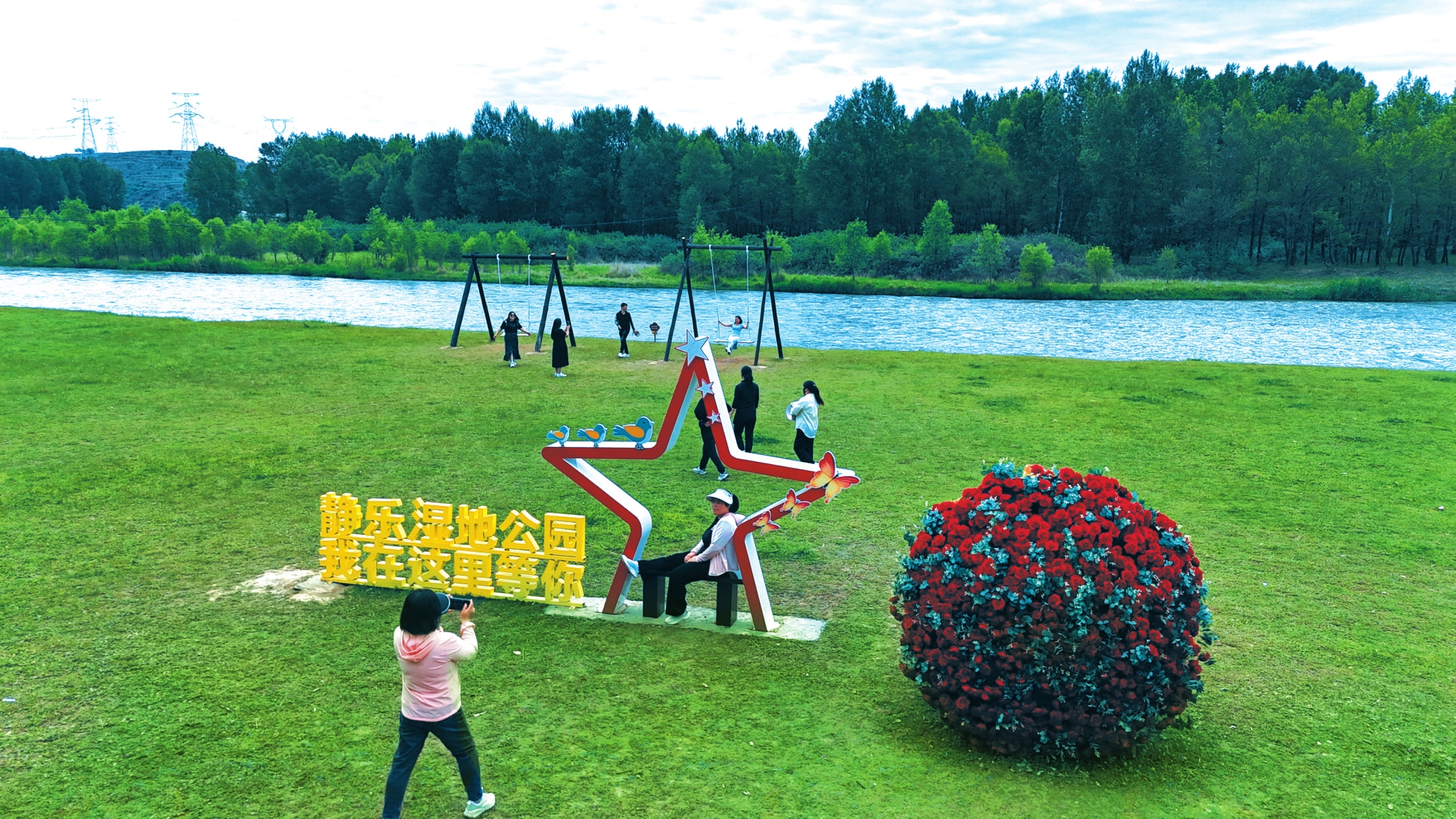 靜樂汾河川國(guó)家濕地公園的特色“網(wǎng)紅打卡點(diǎn)”吸引游客駐足拍照