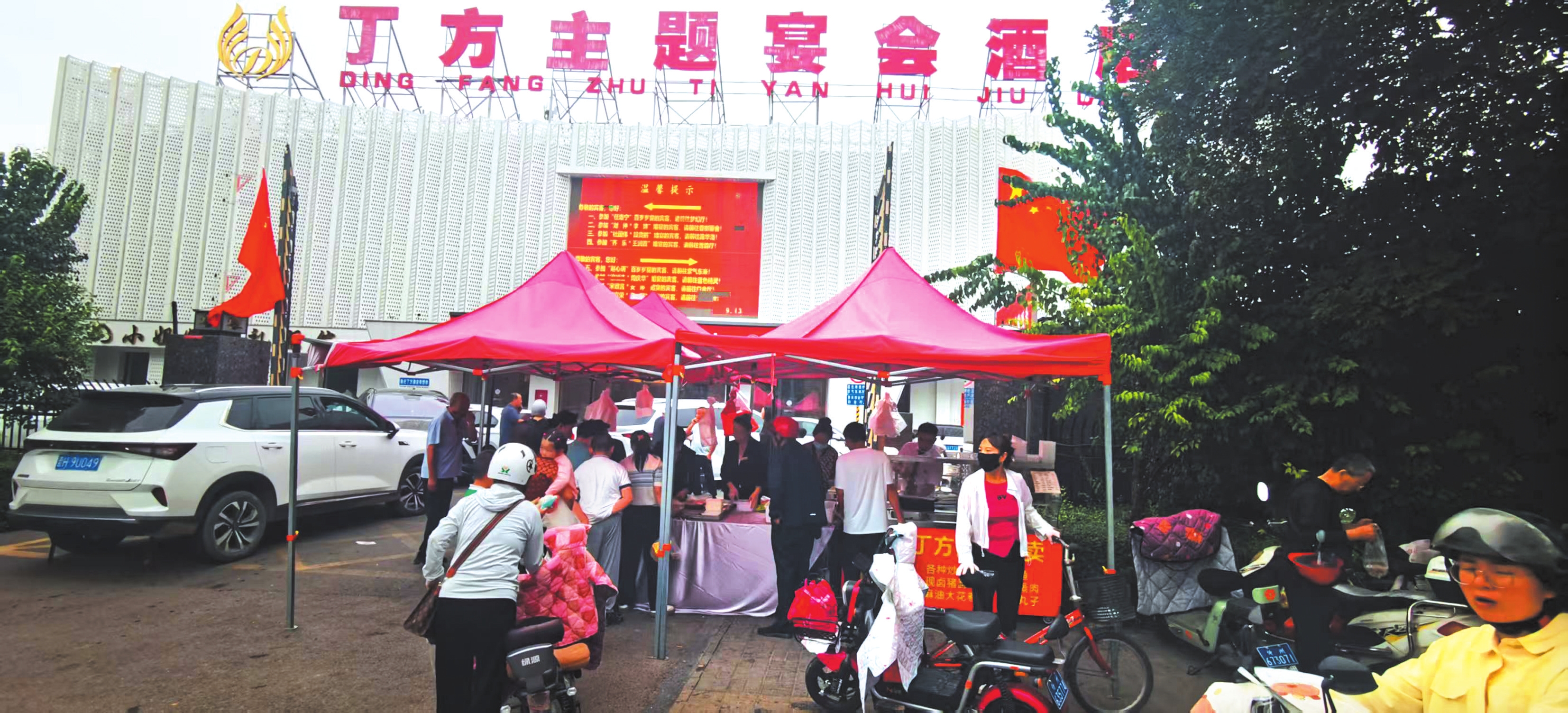 在丁方主題宴會酒店門前的便民攤位,工作人員告訴記者,他們從8月份開始嘗試外擺經(jīng)營,主要供應一些本地特色鹵味和半成品菜:“都是當天現(xiàn)做,和店內(nèi)同一標準、同一后廚,但價格更實惠?!闭谶x購的市民朱女士說:“花小錢就能買到飯店大廚做的硬菜,省時省力還解饞。”