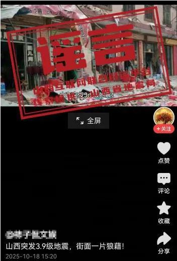 10月18日,有網(wǎng)民發(fā)布“山西突發(fā)3.9級地震,街面一片狼藉!”相關(guān)信息,引發(fā)網(wǎng)民關(guān)注,經(jīng)向相關(guān)部門確認(rèn),該信息與事實不符。