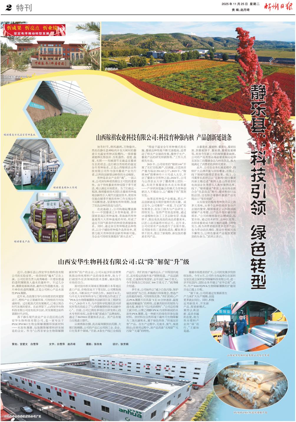 落子靜樂現(xiàn)代農(nóng)業(yè)產(chǎn)業(yè)示范區(qū)的山西安華生物科技有限公司,是一家專注于PVA(PVOH)生物全降解薄膜環(huán)保新材料——水溶性薄膜、包裝膜降解塑料研發(fā)制造的企業(yè)。作為“山西首家全生物降解膜新材料”投產(chǎn)的企業(yè),公司從起步階段便聚焦推動傳統(tǒng)塑料產(chǎn)品的綠色轉型,致力于打破國外在該領域的技術壟斷,填補國內(nèi)市場的空白。