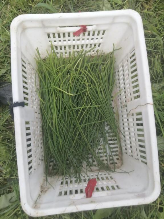 在右玉縣威遠(yuǎn)鎮(zhèn)小香蔥種植基地,連片種植的小香蔥長(zhǎng)勢(shì)喜人。三五成群的農(nóng)民穿著雨鞋,蹲在地里用小鐮刀割蔥,割下一把后把雜草撿出來(lái),把黃尖掐掉,干凈整齊地?cái)[進(jìn)筐子里。