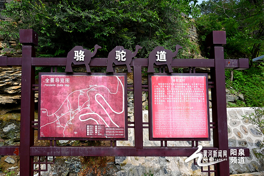 黃河新聞網(wǎng)陽(yáng)泉訊(記者秦銘明)我們的汽車沿著高低起伏、曲折蜿蜒的太行山1號(hào)國(guó)家觀光旅游公路在青山間穿梭,飛鳥(niǎo)時(shí)不時(shí)被驚起,幽靜神秘的太行山宛如輕紗遮面的佳人,靜靜佇立。公路邊、山腰中、泉水旁,黃墻黛瓦的民居錯(cuò)落有致,青石綠苔的石階縱橫交錯(cuò),一個(gè)掩映在青山綠水中,坐落在綠樹(shù)芳草間的村落“駱駝道村”出現(xiàn)在眼前。