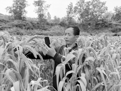 魏寶玉站在齊人高的谷子地里,對著手機(jī)大聲說:“給大家看看,到了十月中旬就能收了。今年谷子長得多好,全都是上的羊糞有機(jī)肥。”