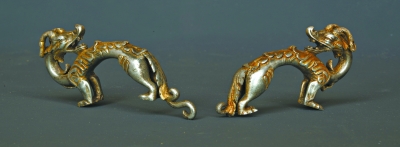 從造型看,這對(duì)銀龍“獸身飛羽、鱷吻回首”。其軀干是哺乳動(dòng)物的造型(蒙古學(xué)者認(rèn)為是獵狗),而不是后來(lái)大家常見(jiàn)的爬行動(dòng)物,同時(shí)背部頸部都有飛起的羽毛。嘴為鱷魚(yú)嘴,向前突出,牙齒明顯,頭是回首狀。很多的細(xì)節(jié),包括牙齒、眼睛、羽毛,都做得很細(xì)致。周立剛認(rèn)為,這個(gè)龍與漢代壁畫(huà)、畫(huà)像石、瓦當(dāng)上龍形非常相近。