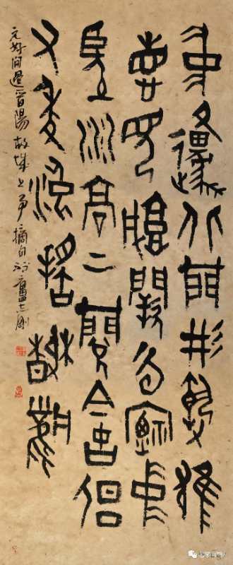 志剛先生因篆悟書,于書入篆,實(shí)際上就是兼顧了書寫的本質(zhì),找到了體現(xiàn)“漢字”本性的落點(diǎn)。對(duì)于一個(gè)書法家來(lái)講,除了解決書法的共性特征外,必須解決自己的個(gè)性特征才能名符其實(shí),否則就很難有較高的成就。因?yàn)椤白钡木C合性和獨(dú)特表現(xiàn)性,正好可以給書寫者提供一種理解書法特質(zhì)的通道,那就是如何在更為有限的空間里呈現(xiàn)漢字審美的問(wèn)題!在篆里,漢字固定的型,卻可以,而且必須根椐不同的語(yǔ)境有所改變才會(huì)呈現(xiàn)出藝術(shù)魅力。也就是先能“有”,然后再進(jìn)入“無(wú)”,從“有”入“無(wú)”就可以得自由,如果能夠解決這一問(wèn)題,并將之綜合體現(xiàn)在書法創(chuàng)作中自然就會(huì)有在非同凡響的面貌。