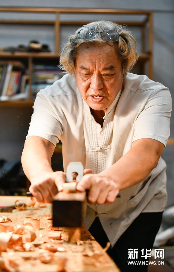 8月25日,在天津職業(yè)大學辛全生大師木藝工作室,辛全生在用刨刀刮料。今年62歲的辛全生是天津市南開區(qū)傳統(tǒng)木工榫卯技藝的非遺代表性項目傳承人。2019年9月,天津職業(yè)大學為發(fā)展并傳承木工技藝,邀請辛全生作為老師給學生們授課,負責教授學生們榫卯結構知識和木藝家具制作等實用技巧,并于2019年底在校內建立辛全生大師木藝工作室。 辛全生出生于匠人家庭,他聽從父親的建議從16歲開始學習木工。40余年的木工生涯,辛全生經歷過木工行業(yè)曾經的紅火和后來的逐漸衰落,也曾在最艱難的時候做過別的營生。但無論如何,辛全生始終忘不了自己的木工身份?!袄献孀诹粝聛淼臇|西不能丟了,要傳承下去,否則將來的后代誰都不知道木工榫卯技術的存在了。”辛全生說。 近年來,有近百名不同職業(yè)、不同年齡的人慕名前來拜辛全生為師,學習傳統(tǒng)木工榫卯技藝。辛全生說,我會讓徒弟們學好木工榫卯技藝,讓中國的傳統(tǒng)手藝發(fā)揚光大。新華社發(fā)(孫凡越 攝)