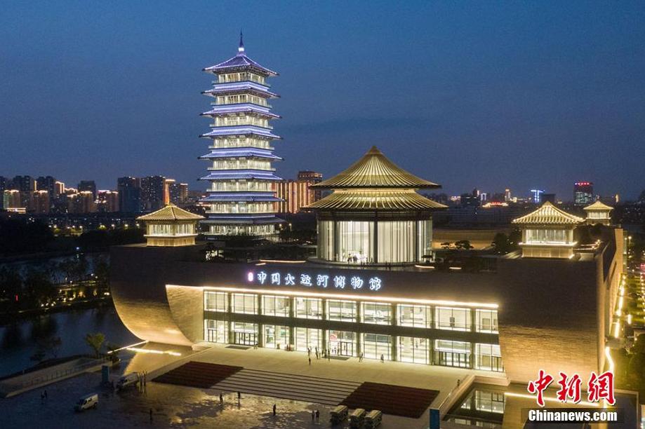 6月15日,江蘇省揚(yáng)州市,中國(guó)大運(yùn)河博物館流光溢彩“盛裝”亮相。揚(yáng)州中國(guó)大運(yùn)河博物館坐落于揚(yáng)州三灣古運(yùn)河畔,由展館、內(nèi)庭院、館前廣場(chǎng)、大運(yùn)塔和今月橋五部分組成,將于6月16日正式開館。揚(yáng)州是中國(guó)大運(yùn)河的原點(diǎn)城市和申遺牽頭城市,2500多年前吳王夫差在揚(yáng)州開鑿古邗溝,拉開了中國(guó)大運(yùn)河的序幕。圖為中國(guó)大運(yùn)河博物館流光溢彩“盛裝”亮相。 (泱波 攝)