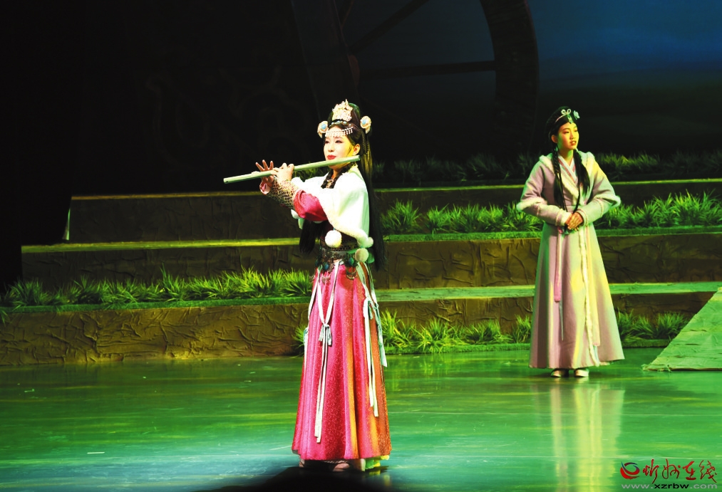民樂(lè)為主,創(chuàng)新融合 《滹源雅韻》以故事性手法生動(dòng)講述了北魏孝文帝拓跋宏的四女兒誠(chéng)信公主與其愛(ài)人崔恂之間的動(dòng)人愛(ài)情傳說(shuō),全劇共分《得喜》《成長(zhǎng)》《抗婚》《逃離》《尾聲》五幕,環(huán)環(huán)相扣,層層遞進(jìn)。通過(guò)跌宕起伏的故事情節(jié)、優(yōu)美動(dòng)聽(tīng)的音樂(lè)旋律、凝練通俗的臺(tái)詞旁白、一招一式的形體動(dòng)作和美輪美奐的舞美設(shè)計(jì),生動(dòng)勾勒出主人公敢于打破傳統(tǒng)枷鎖、反抗婚姻包辦、追求美好愛(ài)情的浪漫勇敢形象。伴隨著演員精彩的演繹,臺(tái)下觀(guān)眾無(wú)不深受感染。用千年前的樂(lè)器彈奏,舞姿也更加飄逸、曼妙起來(lái)。這不單是一場(chǎng)表演,更讓觀(guān)眾有了觸摸歷史、對(duì)話(huà)歷史的機(jī)會(huì)。 “傳統(tǒng)文化不應(yīng)該只停留在紙面或解說(shuō)里,可以通過(guò)更直觀(guān)、更形象的方式,讓藝術(shù)和公眾形成一種互動(dòng),滿(mǎn)足公眾對(duì)文化可感的期待?!笨倢?dǎo)演劉建斌表示。《滹源雅韻》正是依托音樂(lè)為載體,融合了琵琶、竹笛和笙等中國(guó)傳統(tǒng)器樂(lè),以及繁峙秧歌戲、北路梆子、八音會(huì)等地方特色文化元素,展現(xiàn)出北魏時(shí)期民族音樂(lè)在融合中兼收并蓄的多元文化特質(zhì)。“音樂(lè)”和“語(yǔ)言”的雙重表述,通過(guò)服裝、燈光、造型及多媒體舞美技術(shù),呈現(xiàn)出令人耳目一新的華美樂(lè)章。 《滹源雅韻》所講述的故事與現(xiàn)在繁峙縣的公主村、公主寺有很大歷史淵源?!皬臒o(wú)聲的古建到有聲的古樂(lè),我聽(tīng)見(jiàn)了歷史與藝術(shù)的對(duì)話(huà),那是跨越時(shí)空的經(jīng)典,流淌在心中的旋律。”山西省戲劇家協(xié)會(huì)原主席竇明生說(shuō),“民族器樂(lè)劇這種獨(dú)特的音樂(lè)表現(xiàn)形式如今在中國(guó)的發(fā)展方興未艾。劉建斌老師作為一個(gè)創(chuàng)作者、策劃者,將多元化的藝術(shù)形式糅合在一起,完成了這部器樂(lè)劇的創(chuàng)作和表演,可以說(shuō)是一次具有里程碑意義的探索和實(shí)踐?!?/p>