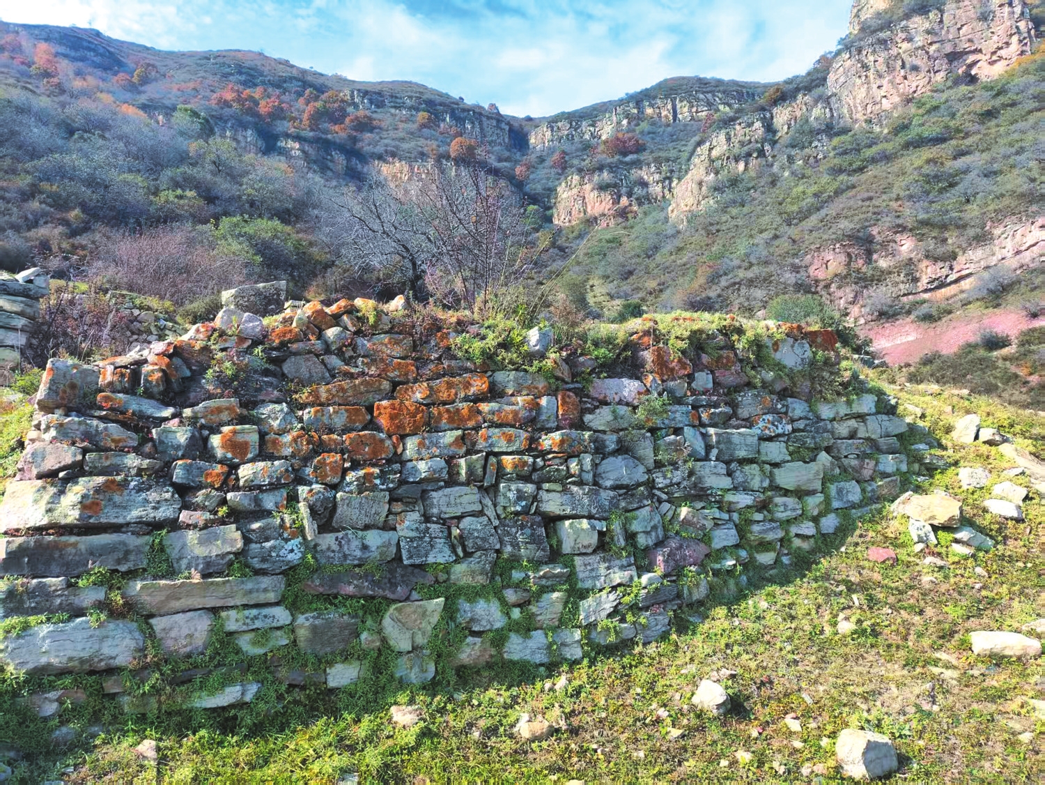 坡道在不斷升高,玉皇峁進(jìn)入我們的視野。在玉皇峁的腳下,我們看到了一處貌似村落的遺址,有磚石瓦礫散落,有殘存的石砌墻垣,有石頭筑堰的小塊梯田……玉皇峁村是一個(gè)自然村,但不知建于何時(shí),亦不知廢于何時(shí)。玉皇峁村的故事,早已消逝在千百年的煙云中,我們無(wú)法還原往昔歲月里的真相。