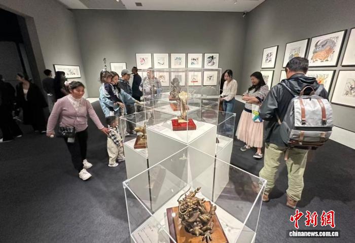 民眾正在觀(guān)看黃永玉的雕塑作品。程景偉 攝