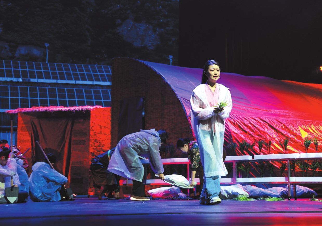 整體來說,話劇《三棵樹下》讓人感受到了編劇、導演以及演出全體的努力。無論是李小雨,還是曹民財,以及村民們,都被時代的洪流裹挾著,個體命運的軌跡不可避免地在歷史的變革洪流中發(fā)生改變。劇目結(jié)尾,以“鄉(xiāng)村文化旅游季”為契機,宋家溝村民們在李小雨、第一書記王家寶以及村委一干人帶領下,大力發(fā)展大棚經(jīng)濟,農(nóng)文旅齊發(fā)展,走上了增收致富的康莊大道,村民們由“要我干”到“我要干”,觀念一旦轉(zhuǎn)變,一切就大變模樣。你只要擺正位置,發(fā)揮自己的優(yōu)勢,就能在鄉(xiāng)村變革中展現(xiàn)嶄新的作為。這便是《三棵樹下》提供給我們的重要啟示。站在這個角度上說,話劇《三棵樹下》的成功也就是順理成章的事情了。其兼具思想深度、藝術(shù)張力和情感溫度,給予觀眾十分好的藝術(shù)享受。(趙志峰)
