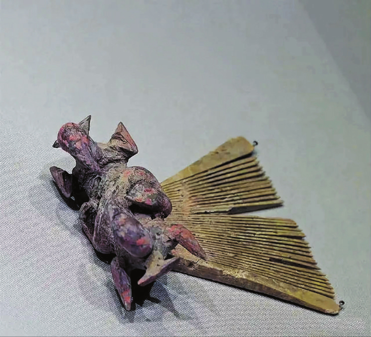 從北白鵝墓地500多件文物中精選出來的骨梳、銅盒、飾品等,大小不一、形態(tài)各異,浸潤著時(shí)光的痕跡。銅盒里面的膏狀物經(jīng)檢測為化妝品,古代女性妝容有三種顏色:白粉覆臉、黛黑描眉畫眼、朱砂或胭脂涂抹口紅。從骨梳來看女性裝飾,春秋時(shí)期已經(jīng)有骨笄等束發(fā)工具,沈從文編的《中國古代服飾研究》中也提及女子成年“及笄”。臨汾隰縣瓦窯坡墓地出土的東周骨梳,上下兩面榫卯對(duì)應(yīng),骨梳背上木質(zhì)榫接左右對(duì)稱有一對(duì)張開翅膀的鳥。周代服飾主要為上衣下裳、上衣右衽,衣服材質(zhì)多是皮毛、麻、葛等。此外東周時(shí)期,青銅鏡制作工藝日趨精美,使用頗為普遍。綜合這些元素,得以想象鏡中的燕姬著禮服、袍、裙、冠飾、玉珠等,或見烏黑的發(fā)髻露出一對(duì)展翅欲飛的鳥兒,顯現(xiàn)古代女性別致的嫵媚。